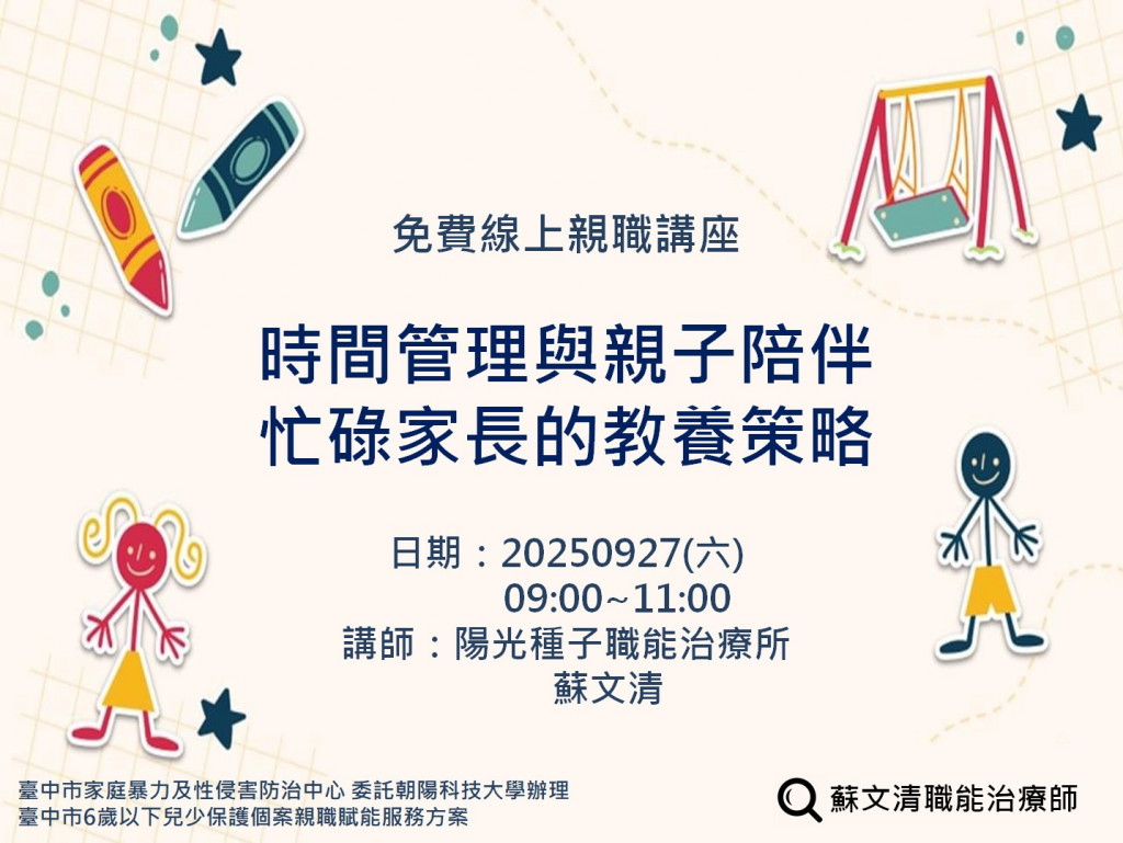 在忙碌的生活中,家長常感到時間不足。本講座將帶領您掌握時間管理技巧,學習如何以高品質陪伴強化親子連結,找到工作與家庭的平衡。