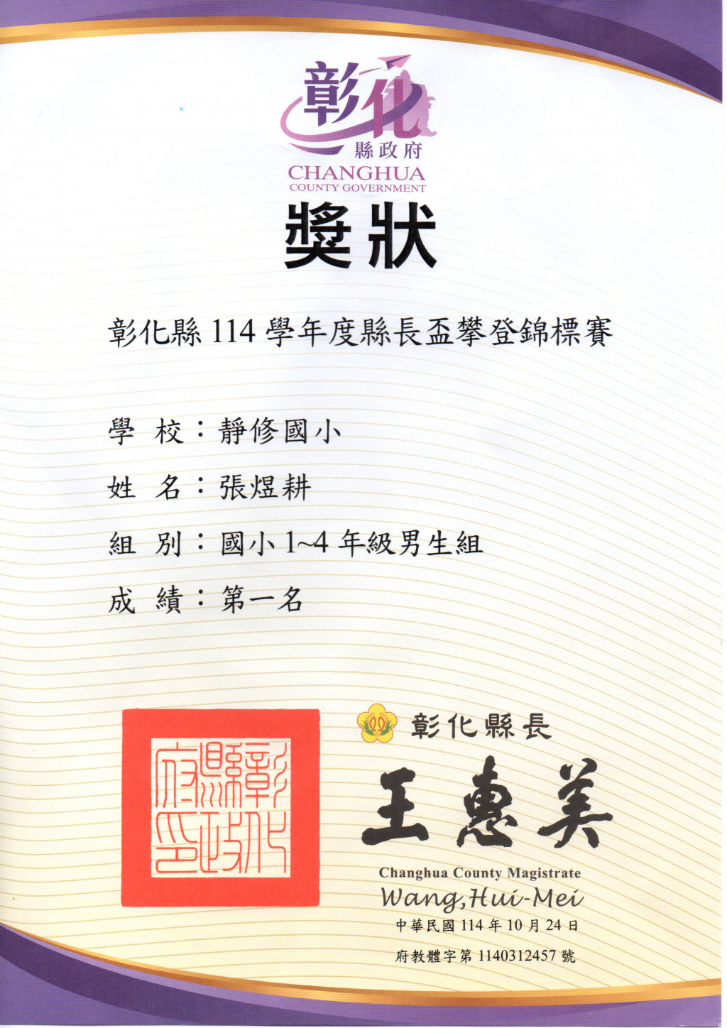 2.306張煜耕榮獲1~4年級男生組第一名。