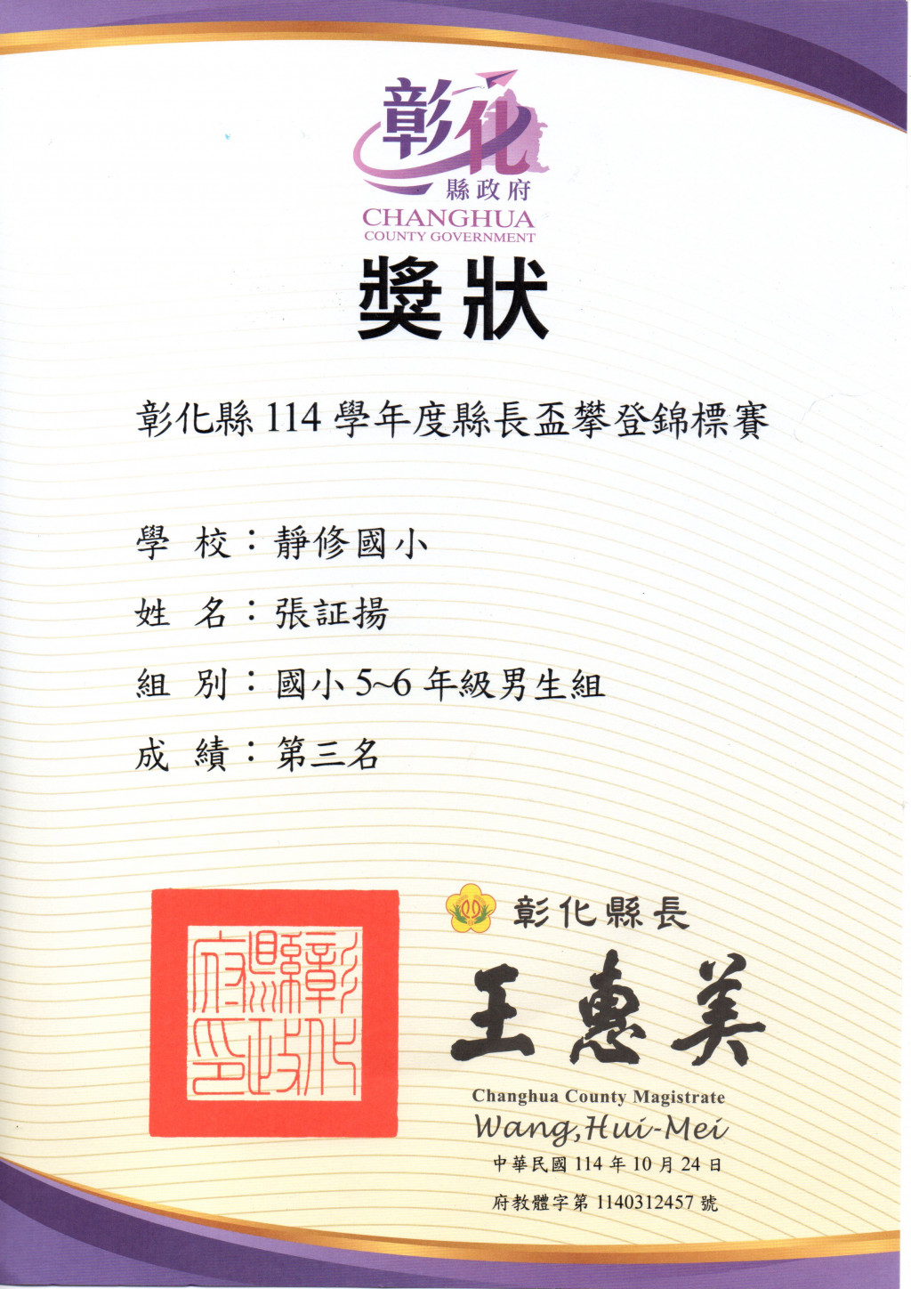 3.608張証揚榮獲國小5~6年級男生組第三名。