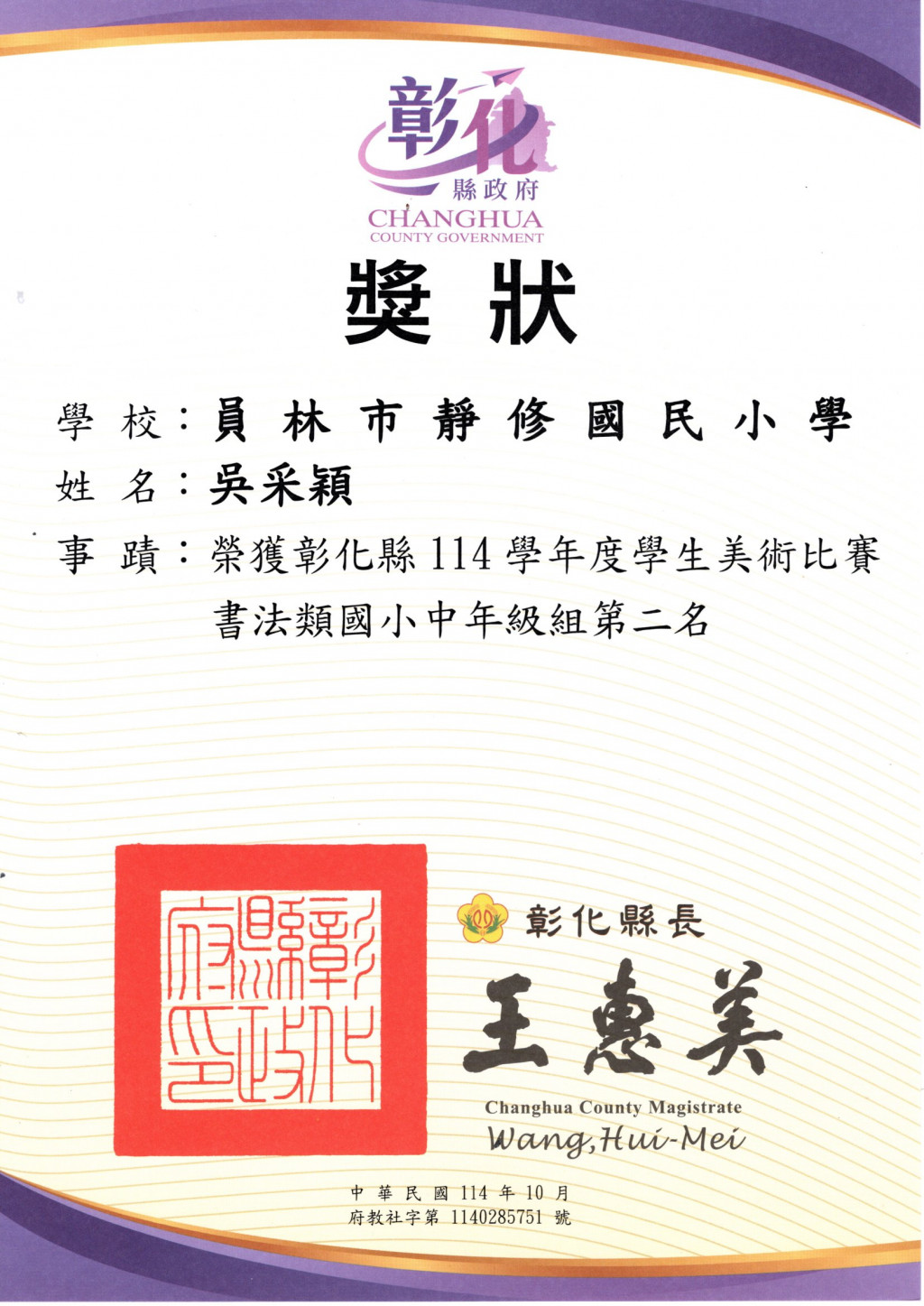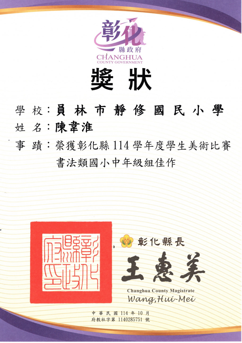 賀!!本校多位學生參加彰化縣美術比賽榮獲佳績
