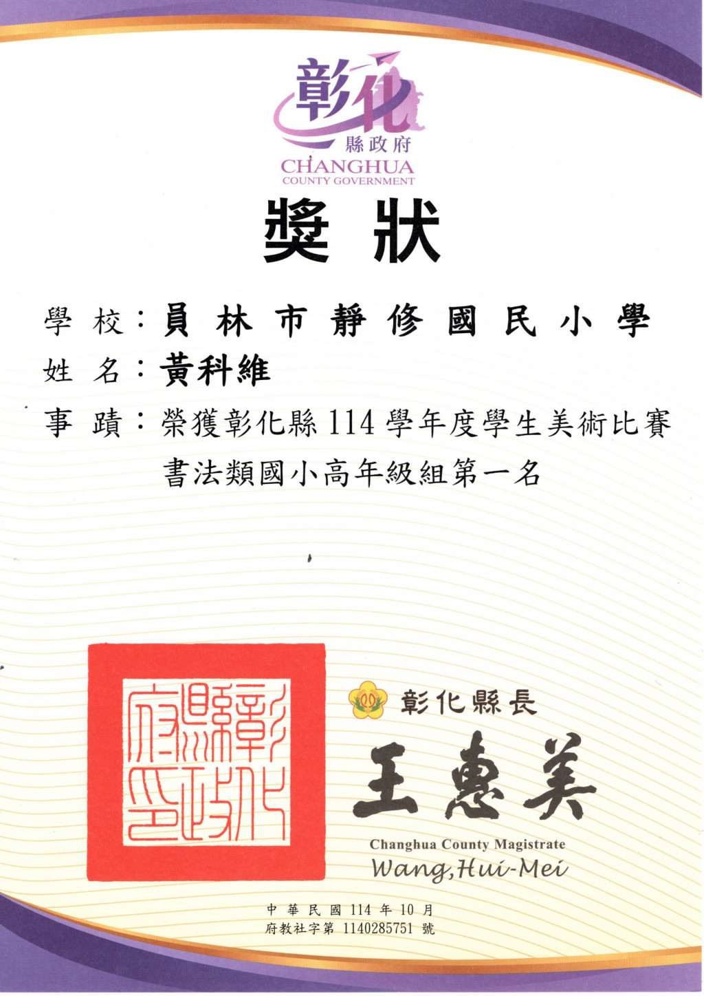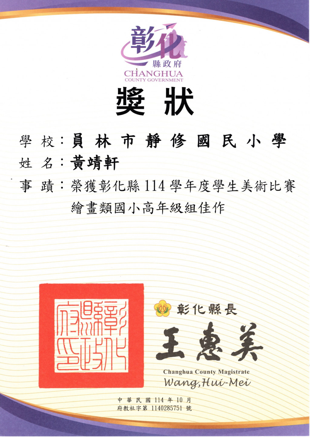 賀!!本校多位學生參加彰化縣美術比賽榮獲佳績!!