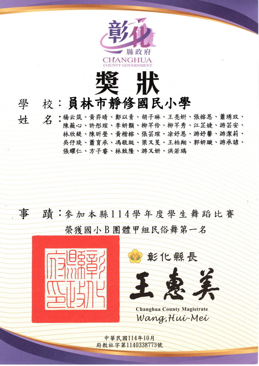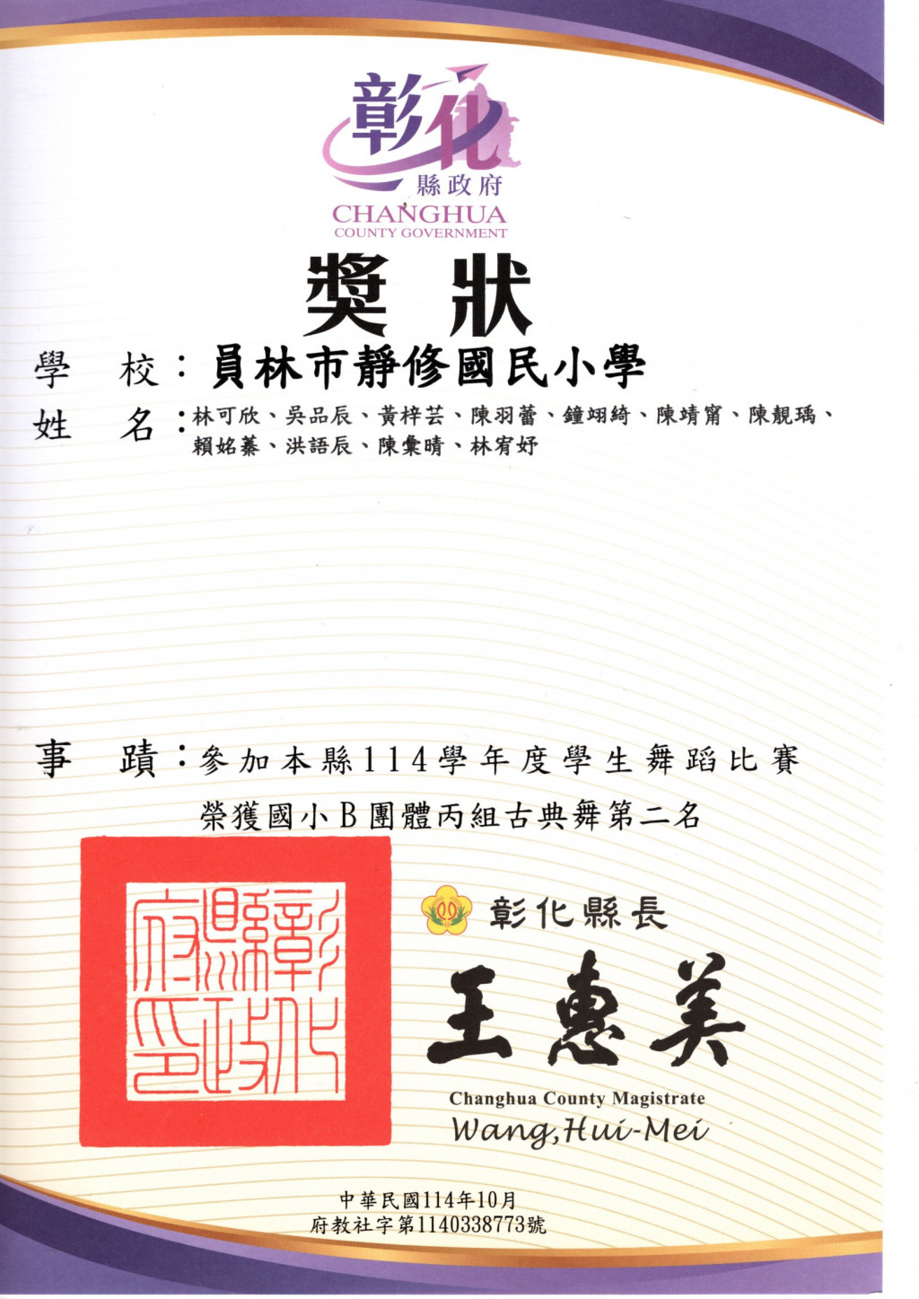 賀!本校學生參加彰化縣舞蹈比賽榮獲佳績
