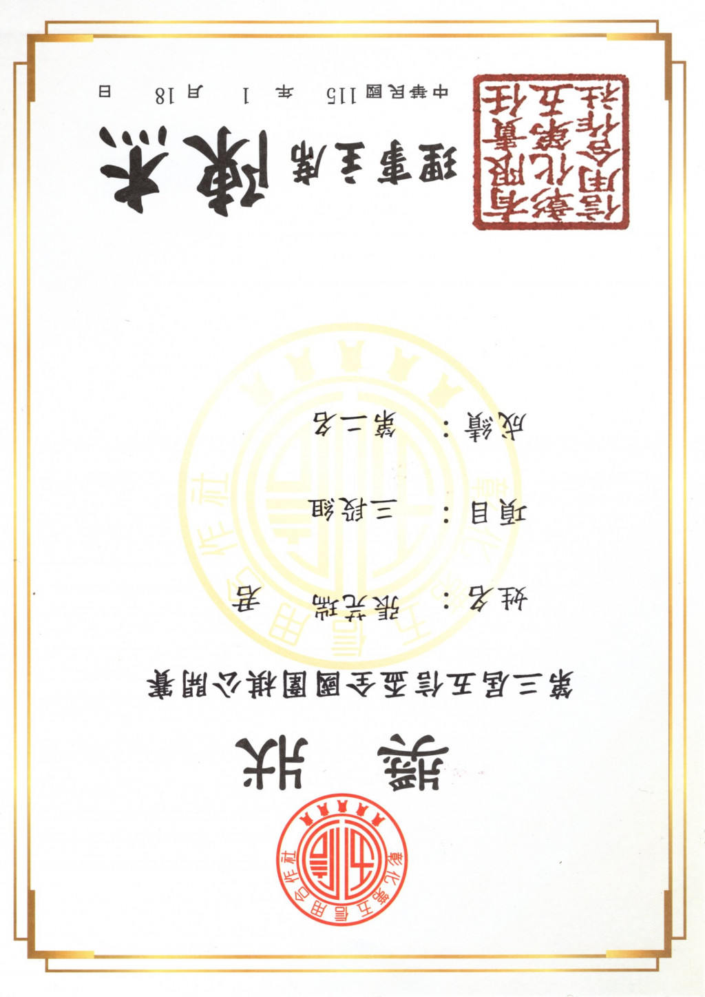 張芫瑞第三屆五信盃全國圍棋公開賽 三段組第三名