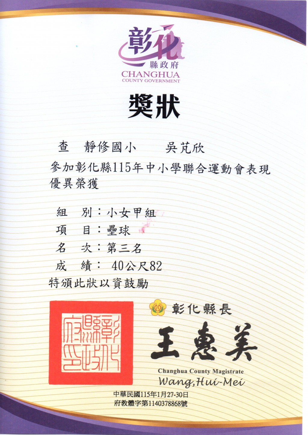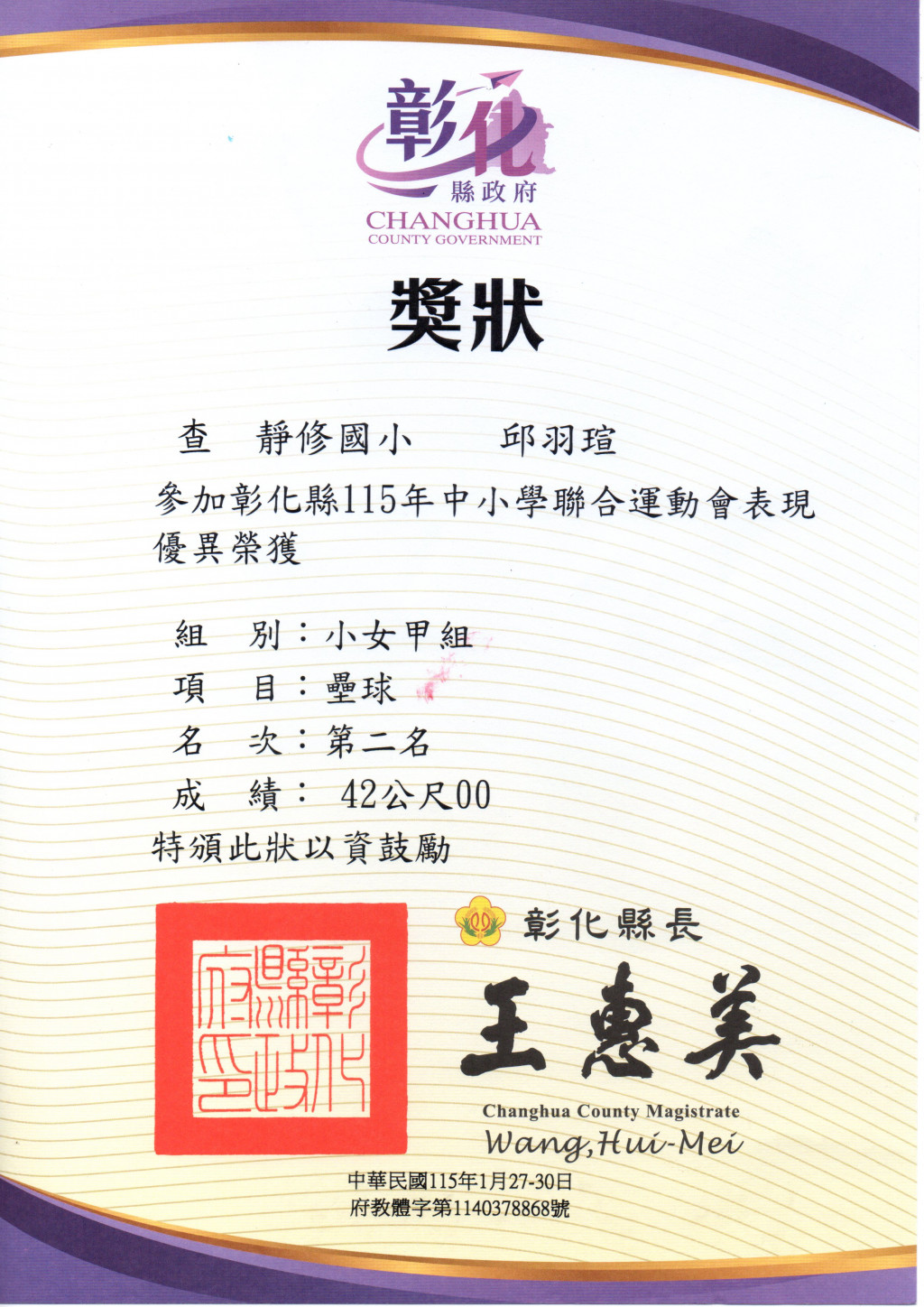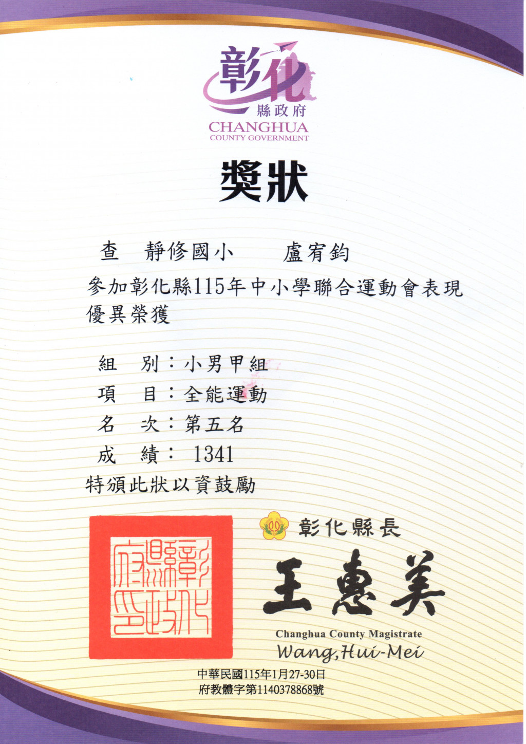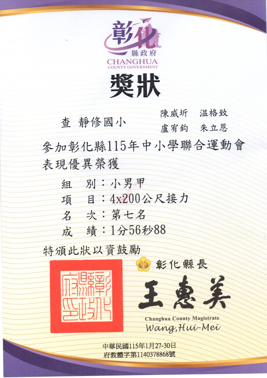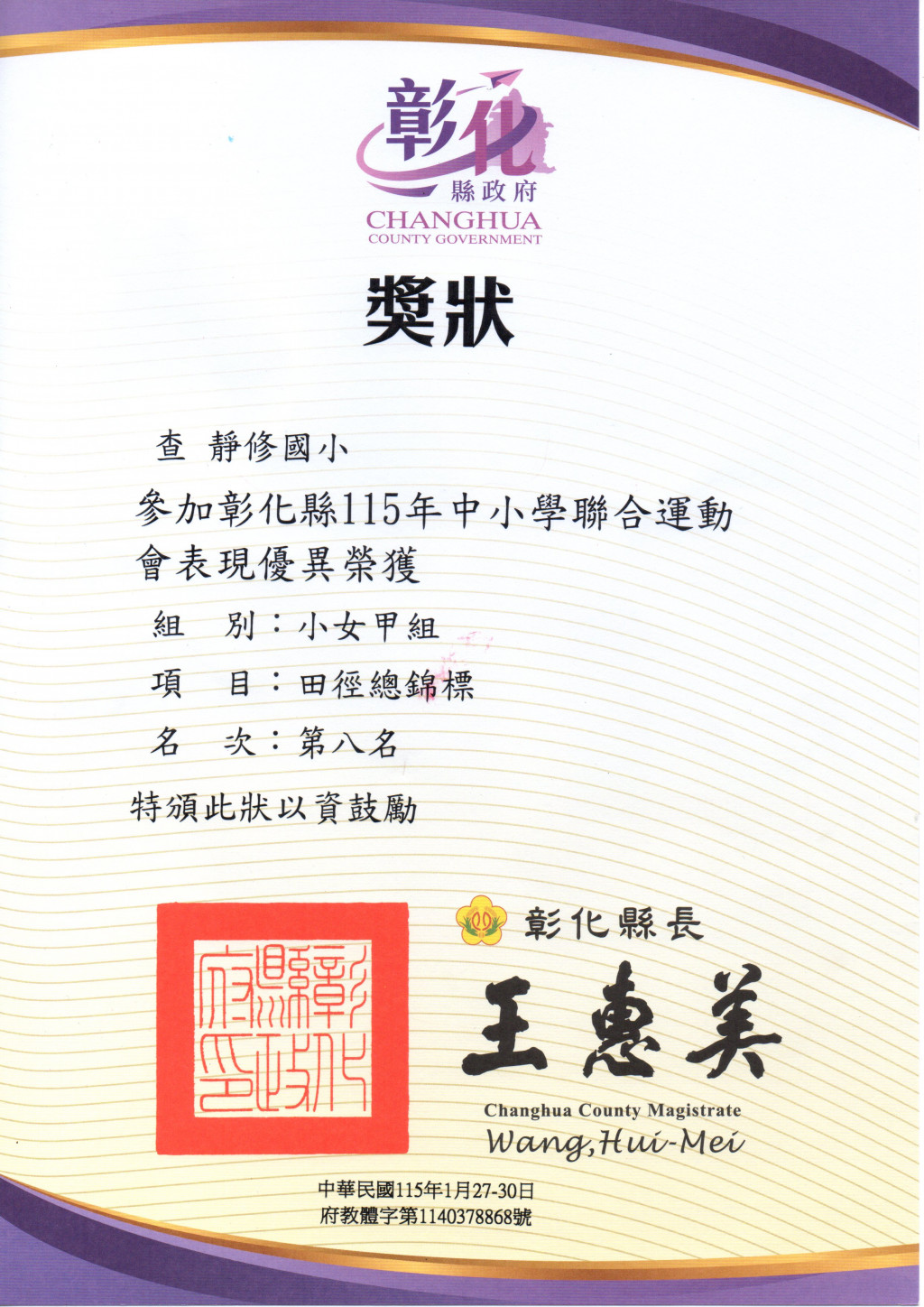 賀本校學生參加115年度彰化縣中小學聯合運動會榮獲佳績。