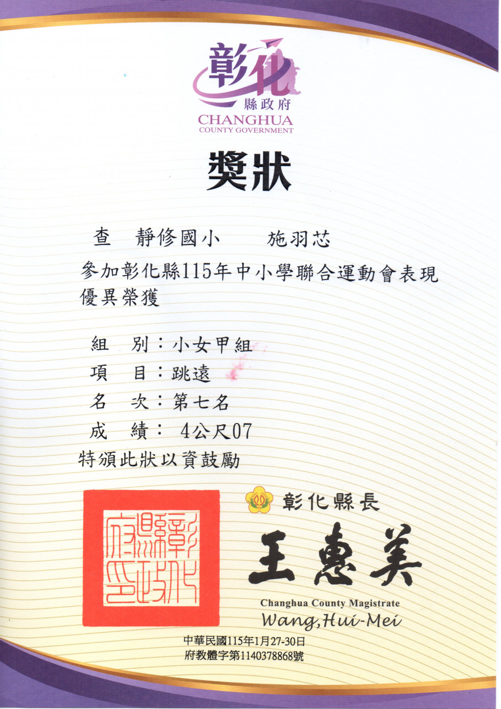 5.女生跳遠602施羽芯第七名(4.07公尺)